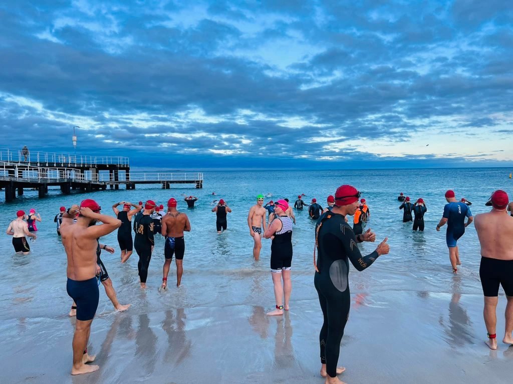 Swim sheltered by the offshore Islands, a smooth ride along the closed Cockburn Road, and flattish run on the sheltered coastal path.